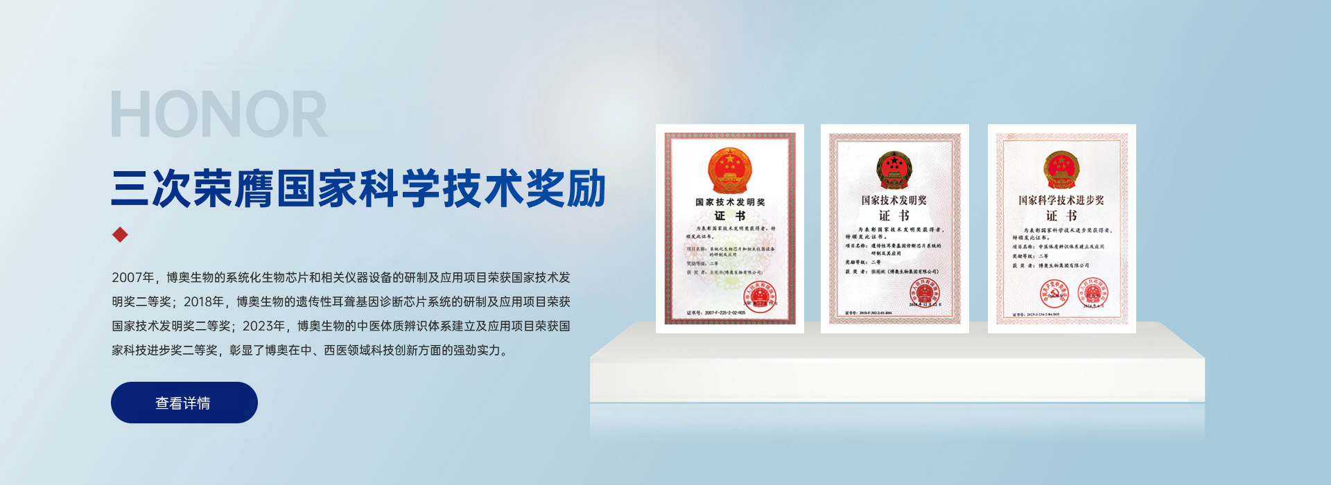 2024年6月24日,中共中央、國(guó)務(wù)院在北京隆重舉行國(guó)家科學(xué)技術(shù)獎(jiǎng)勵(lì)大會(huì)。由北京中醫(yī)藥大學(xué)、博奧生物集團(tuán)有限公司(暨生物芯片北京國(guó)家工程研究中心,以下簡(jiǎn)稱(chēng)“博奧生物”)等單位共同完成的“中醫(yī)體質(zhì)辨識(shí)體系建立及應(yīng)用”項(xiàng)目獲2023年度國(guó)家科技進(jìn)步獎(jiǎng)二等獎(jiǎng),這是博奧生物第三次榮膺國(guó)家科學(xué)技術(shù)獎(jiǎng)勵(lì)。[查看詳情]